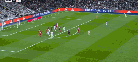 第39分鐘,羅德里戈開(kāi)出任意球,貝林厄姆頭槌破門(mén),皇馬1-0
