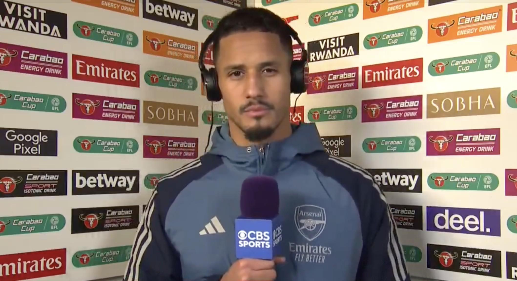 英聯(lián)杯1/4決賽,阿森納通過點球大戰(zhàn)淘汰水晶宮,賽后,阿森納后衛(wèi)薩利巴接受了CBS體育的采訪。