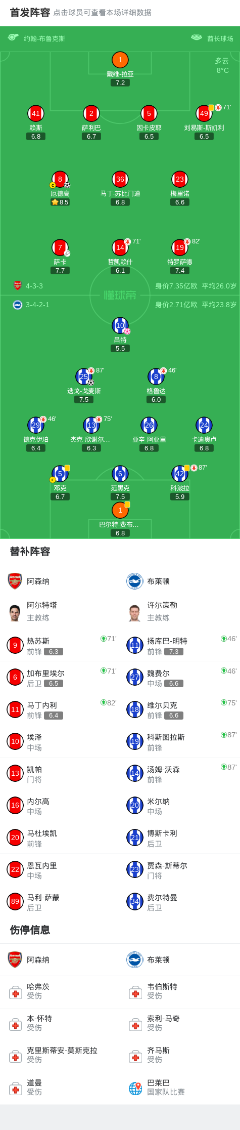北京時間12月27日,英格蘭足球頂級聯(lián)賽第18輪展開較量,阿森納坐鎮(zhèn)主場迎戰(zhàn)布萊頓。上半場薩卡助攻,厄德高遠射攻入賽季首球。下半場賴斯角球造呂特頭球烏龍,之后阿里亞抽射中柱,迭戈-戈麥斯補空門扳回一球,之后明特禁區(qū)內兜射,拉亞極限撲救。最終阿森納2-1戰(zhàn)勝布萊頓。