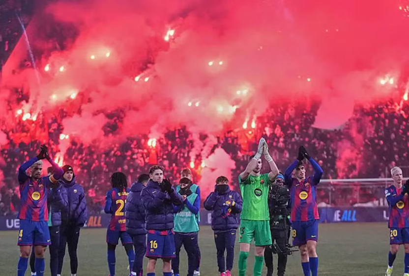 巴薩收到3.05萬歐元罰單,分兩項:球迷在場內(nèi)燃放煙花,罰1.55萬歐元;球隊開球前遲到入場,罰1.5萬歐元。
