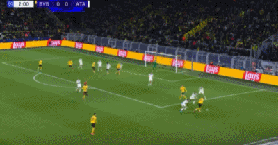 第42分鐘,吉拉西左路傳中,拜爾后點推射空門破門,多特2-0亞特蘭大