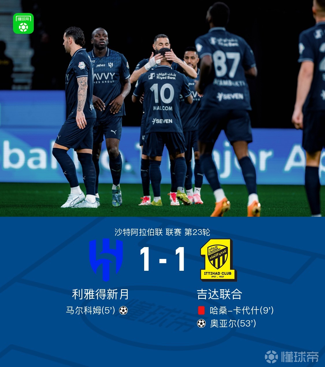 北京時間2月22日,沙特聯(lián)第23輪,利雅得新月主場對陣吉達聯(lián)合。比賽中,馬爾科姆閃擊,哈桑-卡代什染紅,奧亞爾頭槌扳平。最終,利雅得新月1-1十人吉達聯(lián)合。