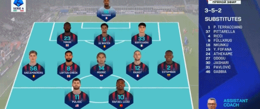 米蘭臨時(shí)換人,德溫特頂替加比亞登場