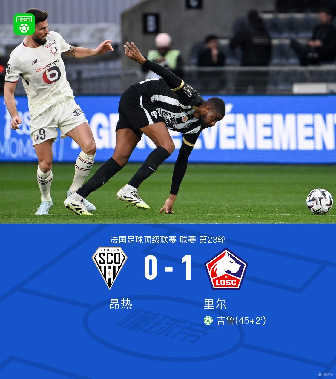 北京時間2月23日法國足球頂級聯(lián)賽第23輪,昂熱主場迎戰(zhàn)里爾。上半場補時階段,桑托斯造點,吉魯點射打入制勝球,最終昂熱0-1不敵里爾。