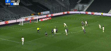 第45分鐘,桑托斯造點,吉魯點射破門,昂熱0-1里爾