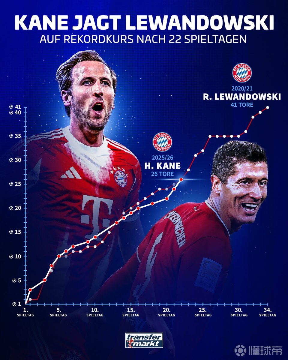 德轉(zhuǎn)對(duì)比凱恩與萊萬紀(jì)錄賽季的進(jìn)球走勢(shì),他會(huì)打破紀(jì)錄嗎?