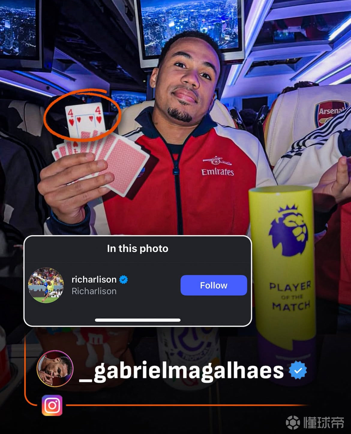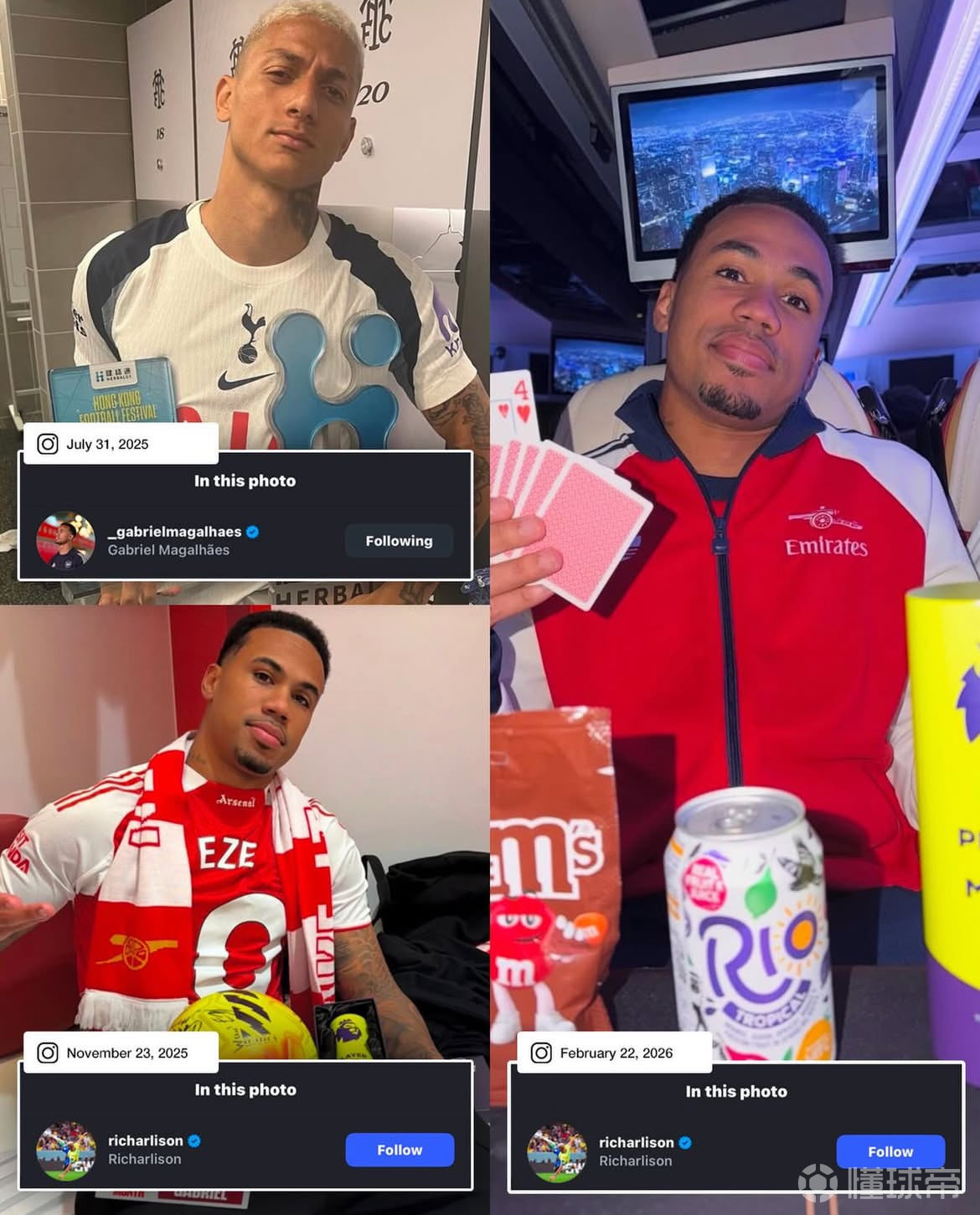 最終,阿森納4-1聯(lián)賽雙殺熱刺。賽后加布里埃爾更新個(gè)人社交媒體,他還特意艾特了理查利松!此前,熱刺在香港戰(zhàn)勝阿森納后,理查利森曬出自己捧起冠軍獎(jiǎng)杯和最佳球員獎(jiǎng)的照片,并@ 加布里埃爾。加布里埃爾隨后曬出自己在北倫敦德比中獲得的三座英超最佳球員獎(jiǎng)杯,并@ 理查利森。理查利森又曬出了熱刺的歐聯(lián)冠軍獎(jiǎng)杯回?fù)簟缃?,看起來兩人這互懟沒完沒了了。