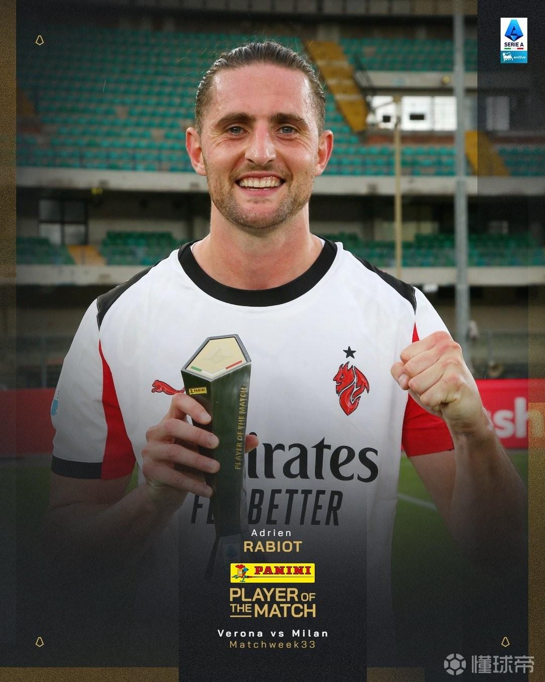 官方消息,拉比奧當(dāng)選維羅納對(duì)陣米蘭一役全場(chǎng)最佳。