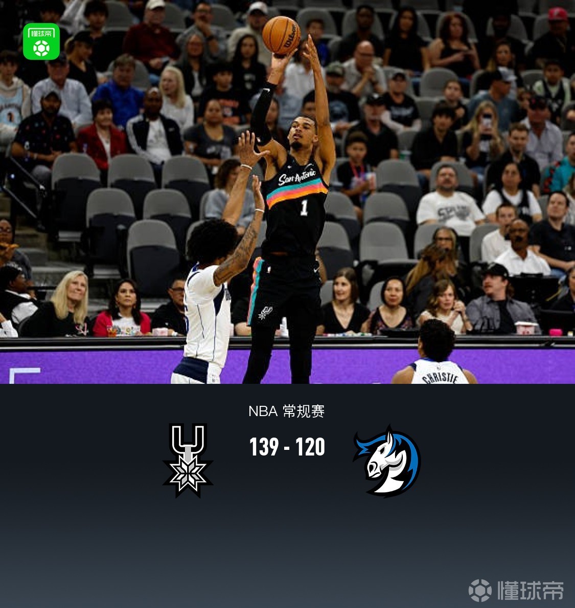 第四節(jié)馬刺哈里森-巴恩斯拿下8分,獨(dú)行俠約翰-波拉基達(dá)斯拿下9分,最終馬刺139-120戰(zhàn)勝獨(dú)行俠