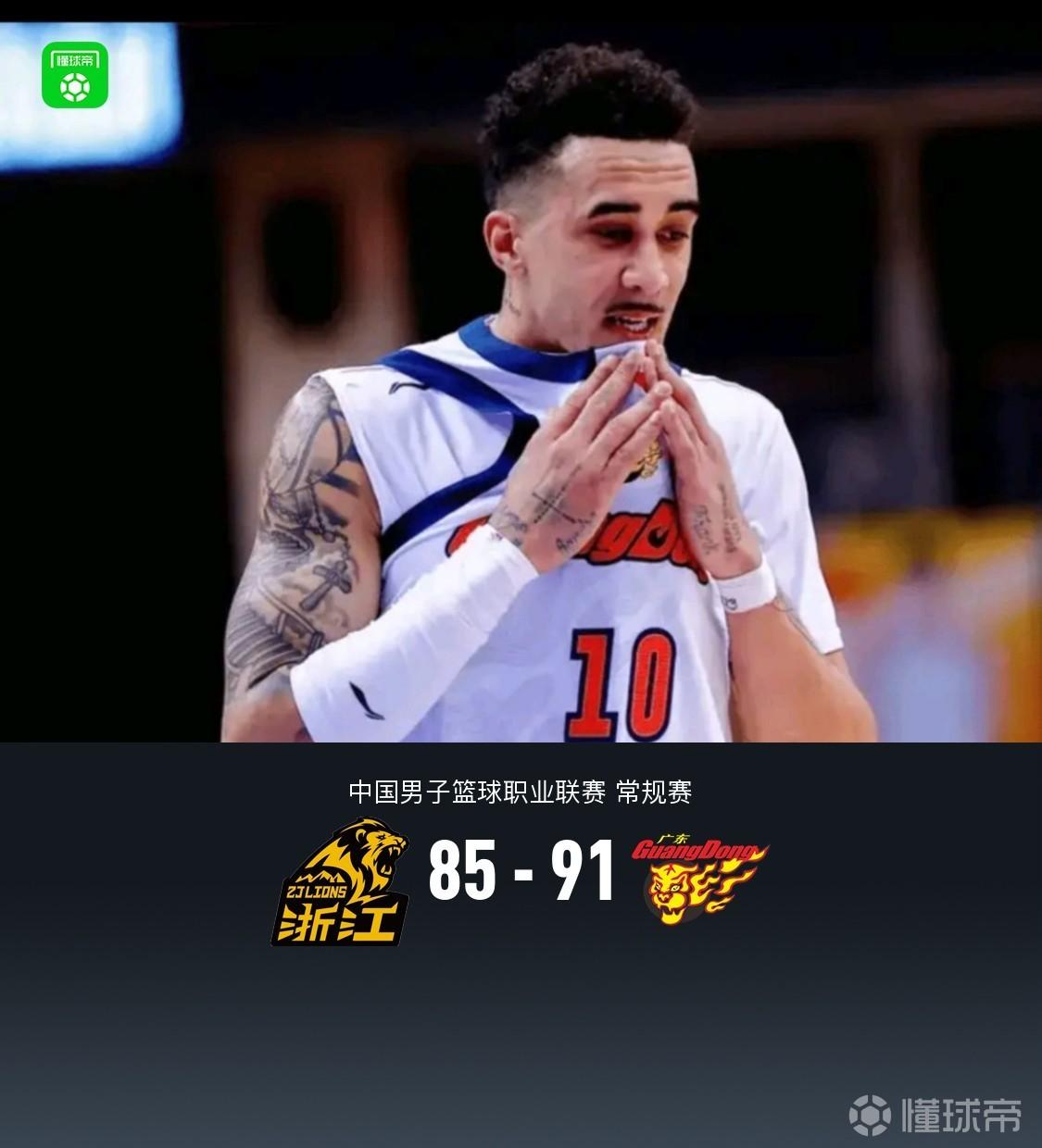 北京時間4月12日中國男子籃球職業(yè)聯(lián)賽 常規(guī)賽,浙江方興渡對陣廣東東陽光。開場廣東便取得9-0開局,隨后持續(xù)保持領(lǐng)先,半場廣廈40-51廣東,三節(jié)結(jié)束廣東領(lǐng)先14分,末節(jié)廣東最大領(lǐng)先18分,后半節(jié)廣廈反撲無果,最終廣東91-85力克廣廈。