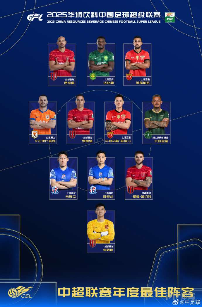 2025賽季中國(guó)足球職業(yè)聯(lián)賽頒獎(jiǎng)儀式今晚舉行,中超賽季最佳陣容公布。