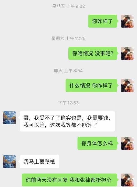 李平康寫(xiě)道:“最擔(dān)心的事情發(fā)生了,之前找我求助向戴琳索要欠款的那位山東泰山球迷近期身體情況急劇惡化,幾天前發(fā)信息沒(méi)有回應(yīng)我就感覺(jué)不好,今天他跟我證實(shí)確實(shí)是出現(xiàn)了一些情況,可以說(shuō)已經(jīng)十分危重,需要接受肝移植手術(shù)。在這樣的情況下,盡管頻繁向戴琳索要欠款但卻收效甚微,不得已還是得在網(wǎng)絡(luò)上繼續(xù)呼吁,欠債還錢(qián)!”