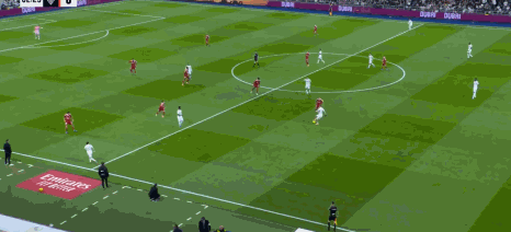 第39分鐘,羅德里戈開(kāi)出任意球,貝林厄姆頭槌破門(mén),皇馬1-0