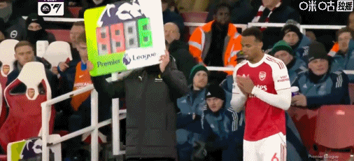 第28分鐘,傷愈回歸的加布里埃爾開始熱身,球迷送上掌聲