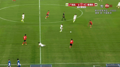 第34分鐘,廣東擴(kuò)大比分!易縣龍中路弧頂接時(shí)子豪橫傳球一腳遠(yuǎn)射龐焯熙撲救失誤黃油手球彈進(jìn)球門,廣東2-0中國(guó)香港。